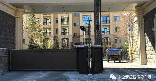> 為維護秩序,保障出行安全,中全清茂量身為張家口崇禮尚城莊園私人定制,打造出頂級質感,特制古銅色伸縮門、廣告道閘裝