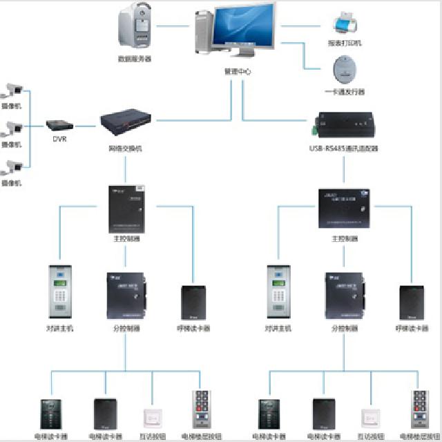 電梯門禁控制系統(tǒng),是在不改變電梯操作面板的硬件基礎(chǔ)上,通過對電梯門禁輸出的繼電器干結(jié)點(diǎn)來控制電梯樓層按鈕的開 通和關(guān)斷。系統(tǒng)對于乘梯人員進(jìn)行發(fā)卡授權(quán),憑卡刷卡操作到達(dá)指定樓層。來訪人員通過呼叫系統(tǒng),受訪人確認(rèn)后給予電梯權(quán)限信 號,自動到達(dá)要訪問的樓層。來訪人也可以通過總臺登記,領(lǐng)取臨時(shí)卡就可使用電梯。業(yè)主通過刷卡和按互訪按鈕,能到達(dá)任意樓 層,與其他業(yè)主進(jìn)行互訪。